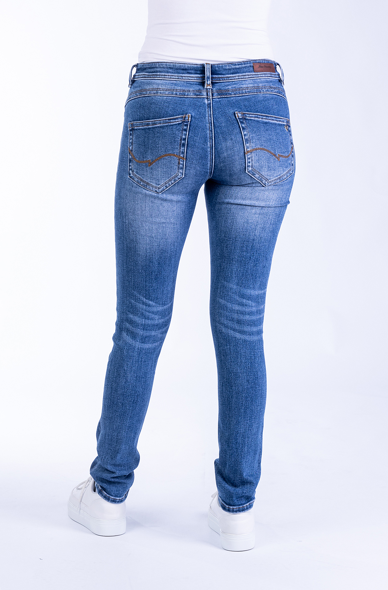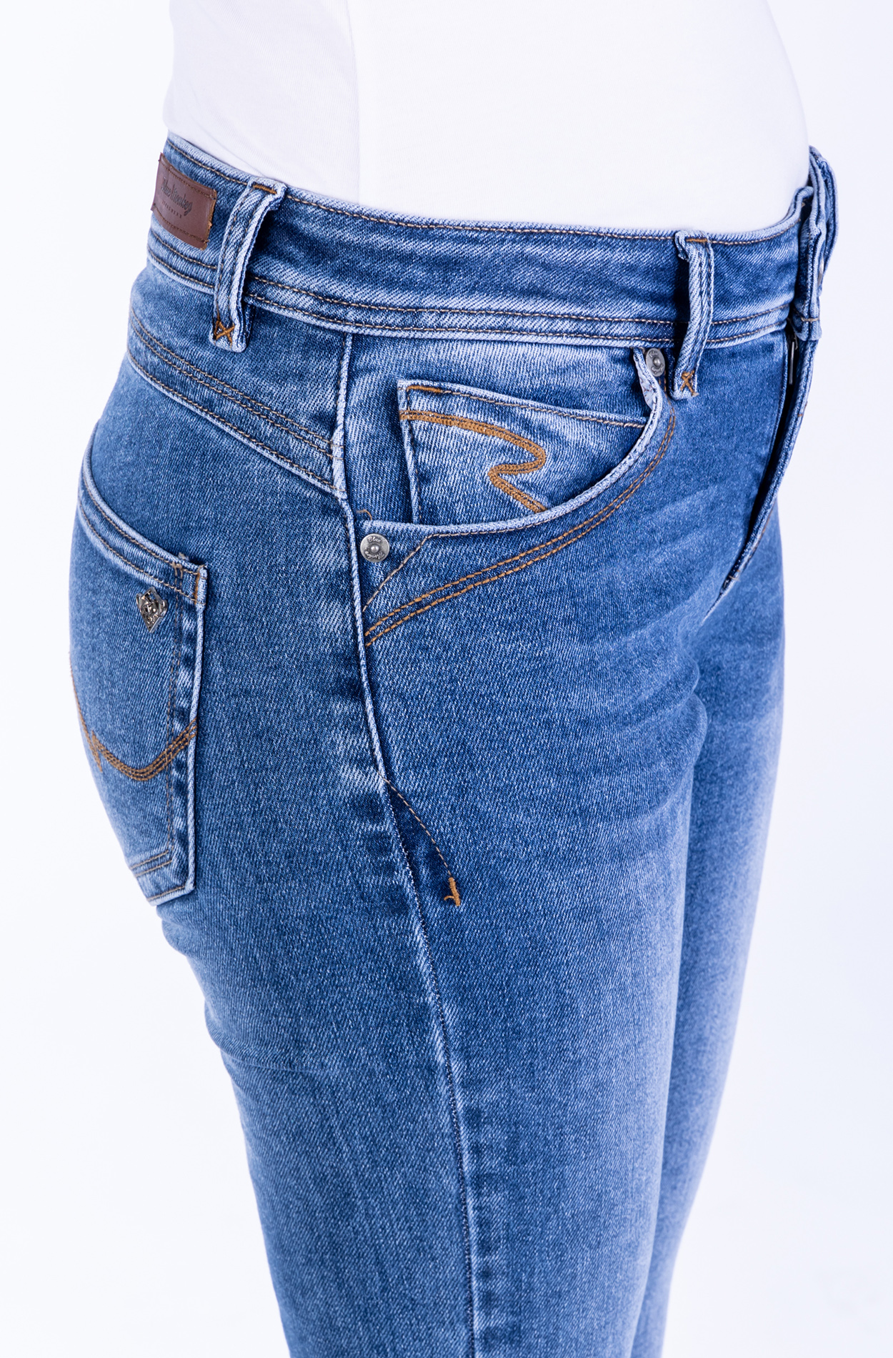 Unsere 5-Pocket Jeans Raya ist durch ihre detailverliebte Stitching Details, ein echter Hingucker. Die angeschrägten Gesäßtaschen sorgen für einen perfekten Fit. Die Slim Fit Jeans lässt sich vielseitig kombinieren und wird dein Denim Favorit im Alltag.