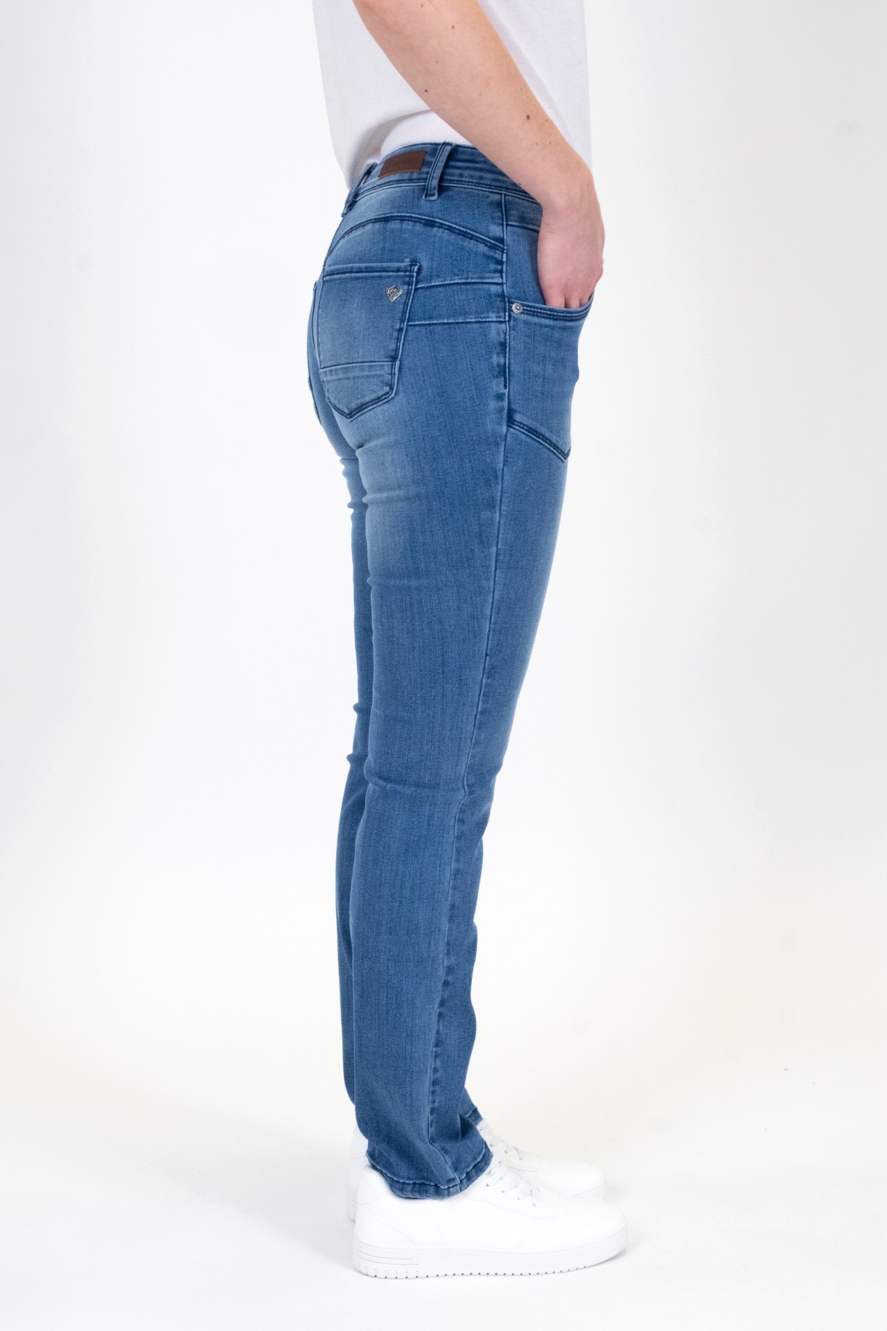 Die Blue Monkey Jeans Maddi mit aufgesetzten Taschen und Doppel-Knopfverschluss ist ein echtes Highlight in jedem Outfit. Der elastische Denim sorgt für einen hohen Tragekomfort und perfekte Passform.