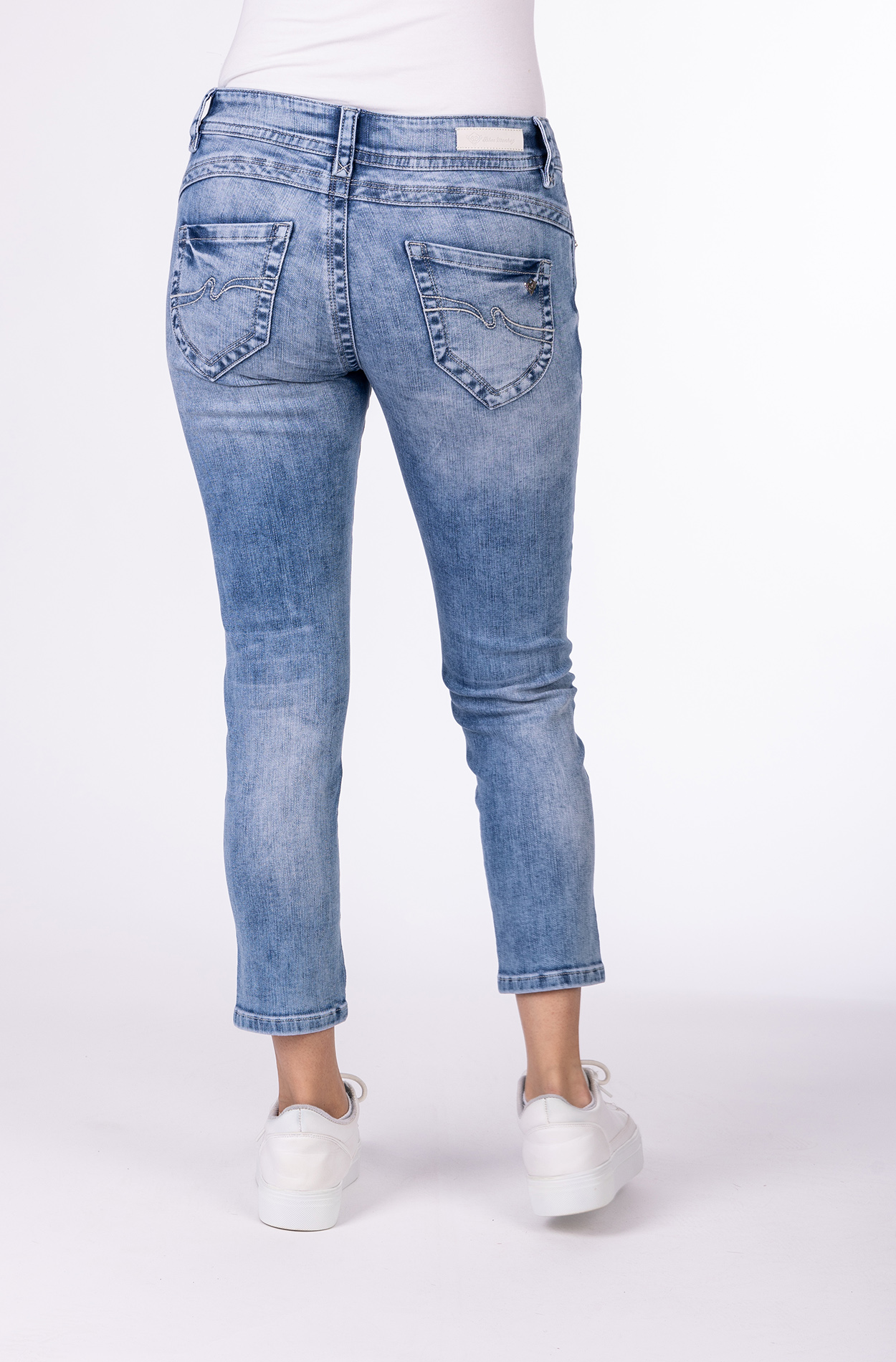 Der Blue Monkey Sommer-Liebling Charlotte gehört in jeden Kleiderschrank! Die 7/8 Jeans ist figurbetont geschnitten und überzeugt mit Shaping-Effekt, welcher durch angeschrägte Gesäßtaschen erzeugt wird. Der glitzernde Saum verleiht der Jeans einen modernen und besonderen Touch.