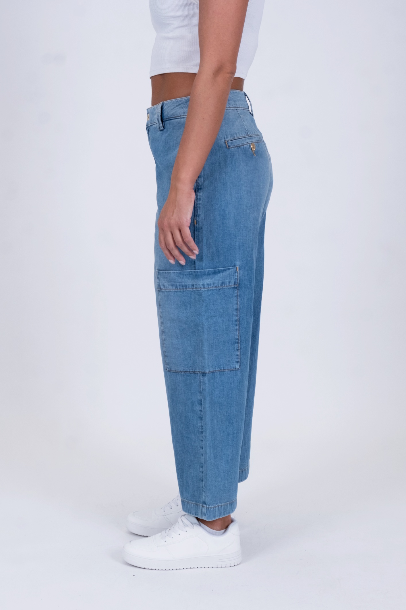Unsere lässige Baggy Jeans mit aufgesetzter Seitentasche ist für alle, die den sportlichen Style lieben, jedoch nicht auf feminine Details verzichten möchten. Die goldenen Knöpfen am Bund und den Gesäßtaschen verleihen der Hose ein schickes Finish.