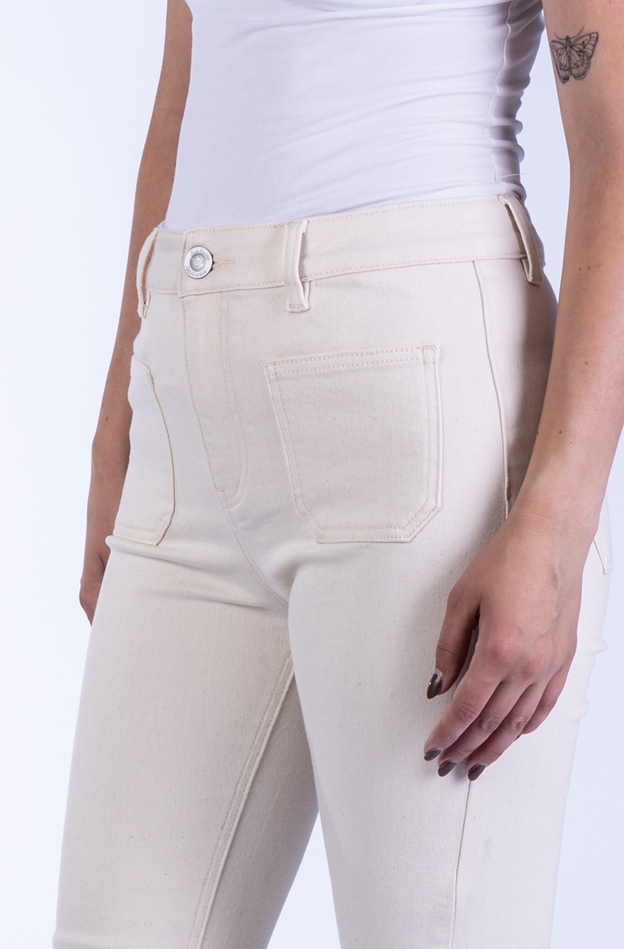 Sadie ist eine Slim Fit Jeans mit verkürztem Bein und offenem Saum. Die aufgesetzten Fronttaschen machen sie zum It-Piece in deinem Kleiderschrank. Der weiche Denim in Off-White lässt sich beliebig kombinieren.