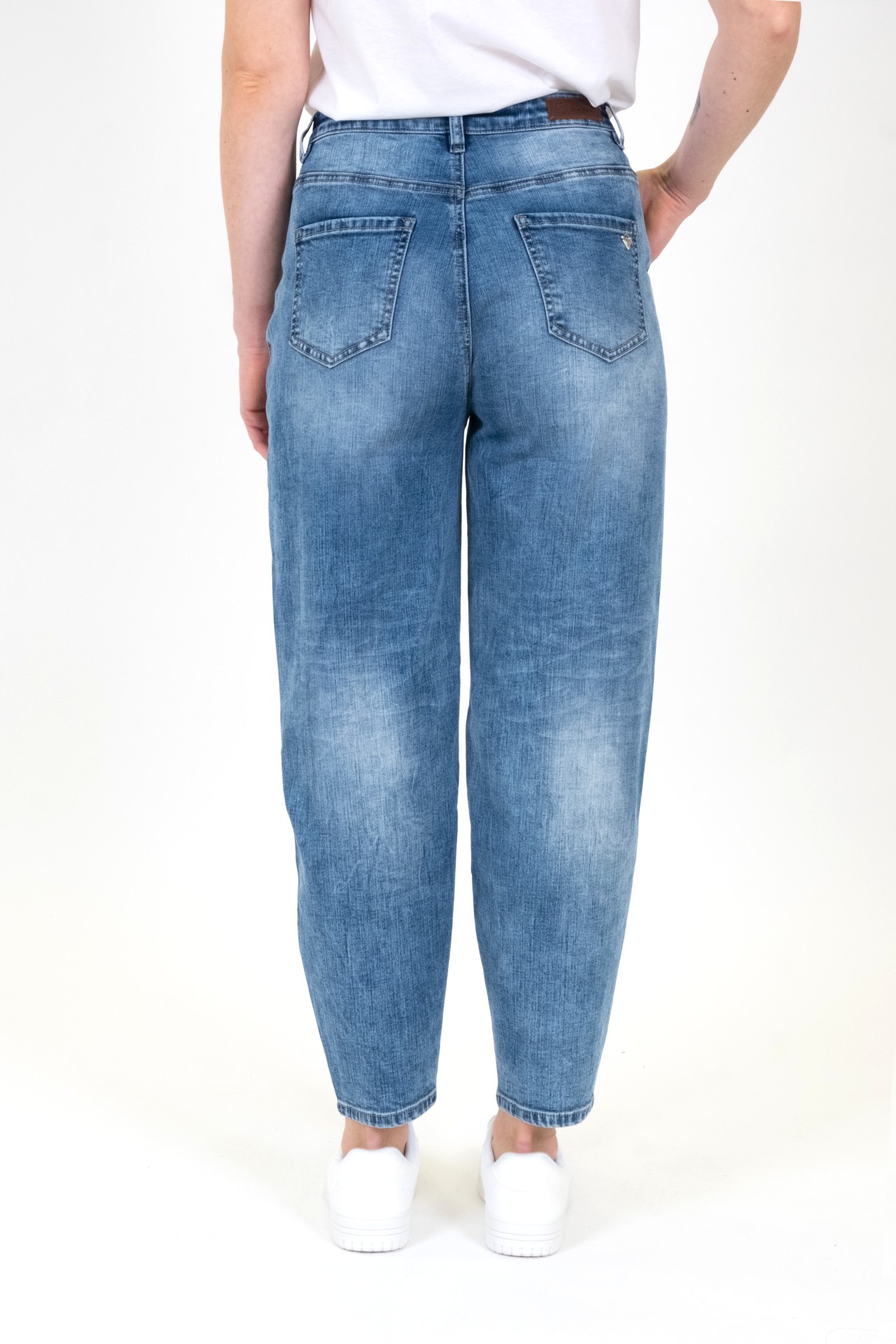 Der modische Blue Monkey Style Ashley sitzt bequem auf der Taille. Der Ballon Fit entsteht durch den O-Shape Beinverlauf und die Bundfalten. Die Cropped Länge verleiht der Jeans eine extra lässiges Finish.