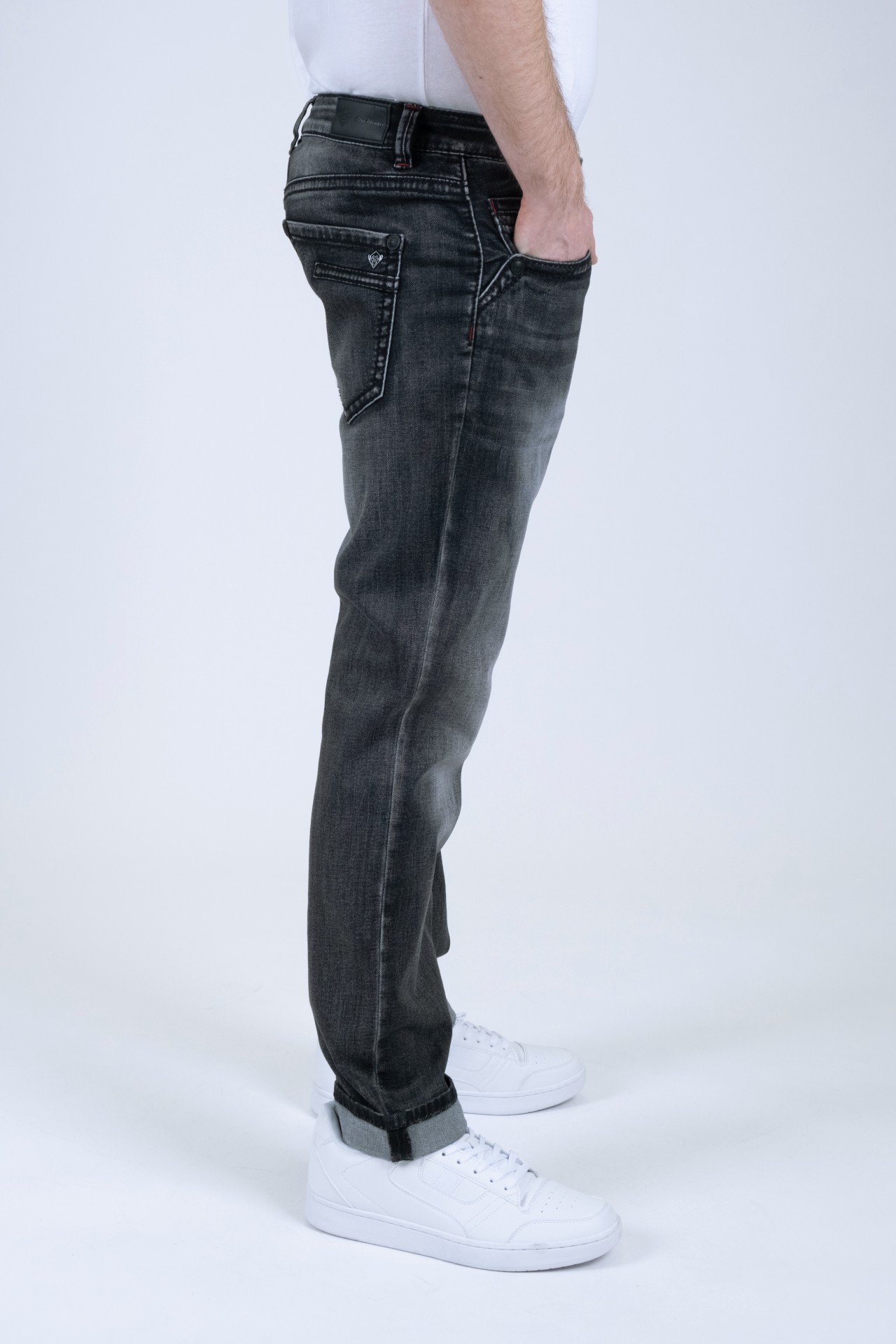 Freddy ist ein echter Blue Monkey Klassiker. Die Slim Fit Jeans ist ein Allrounder für jeden Tag. Der Denim Style überzeugt mit detailreichen Nähten an den Front- und Gesäßtaschen.