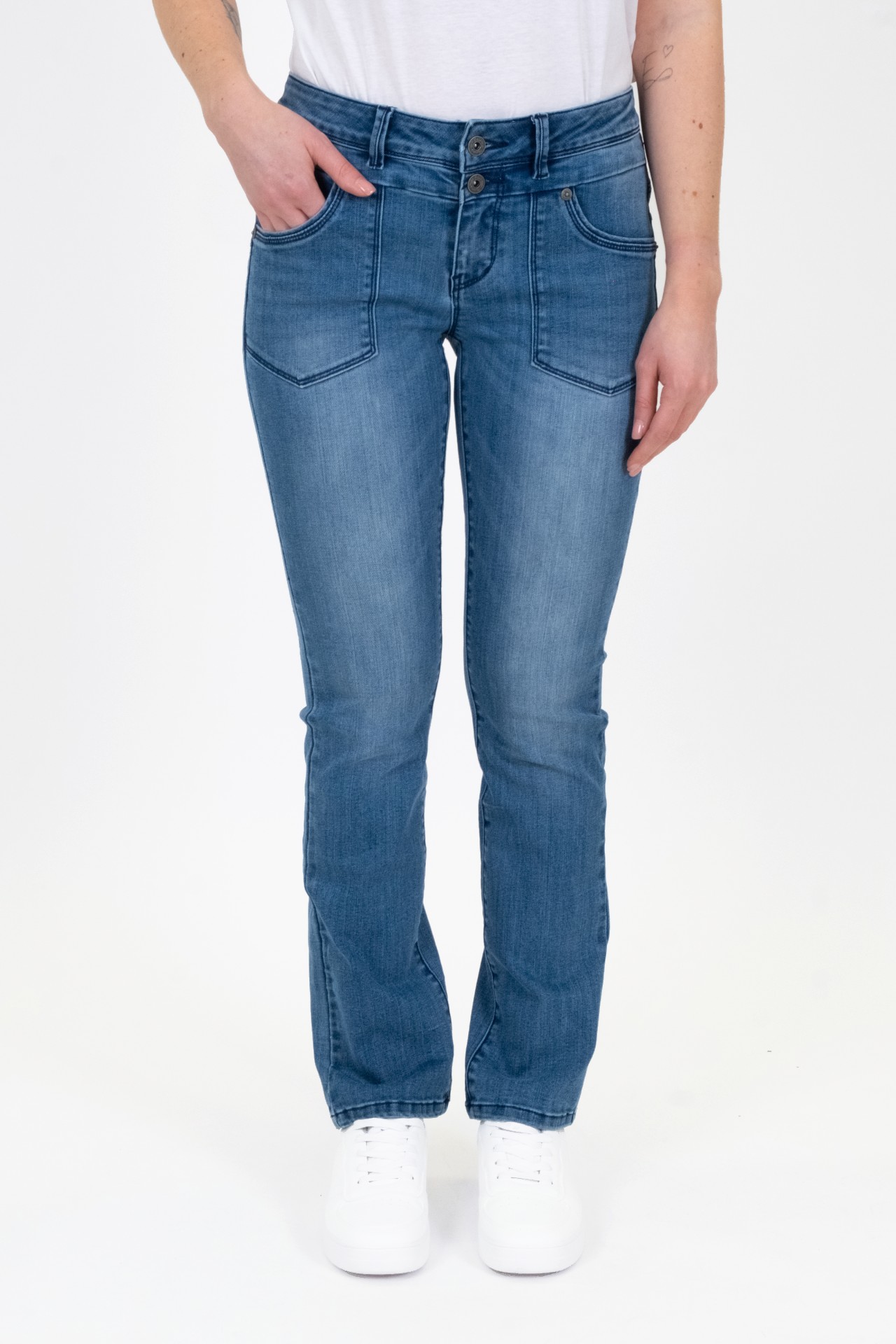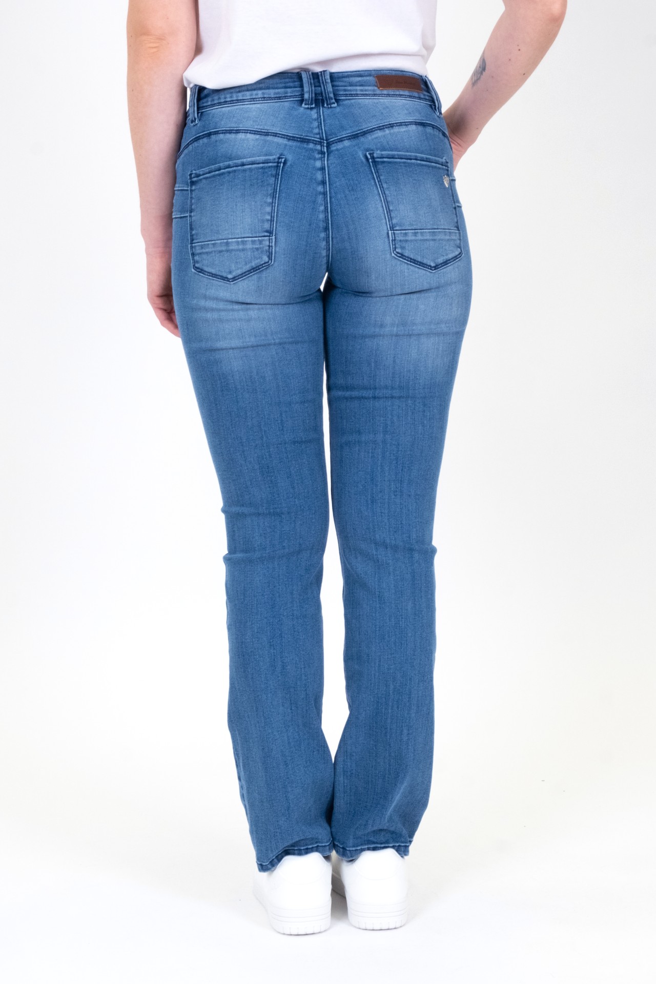 Die Blue Monkey Jeans Maddi mit aufgesetzten Taschen und Doppel-Knopfverschluss ist ein echtes Highlight in jedem Outfit. Der elastische Denim sorgt für einen hohen Tragekomfort und perfekte Passform.