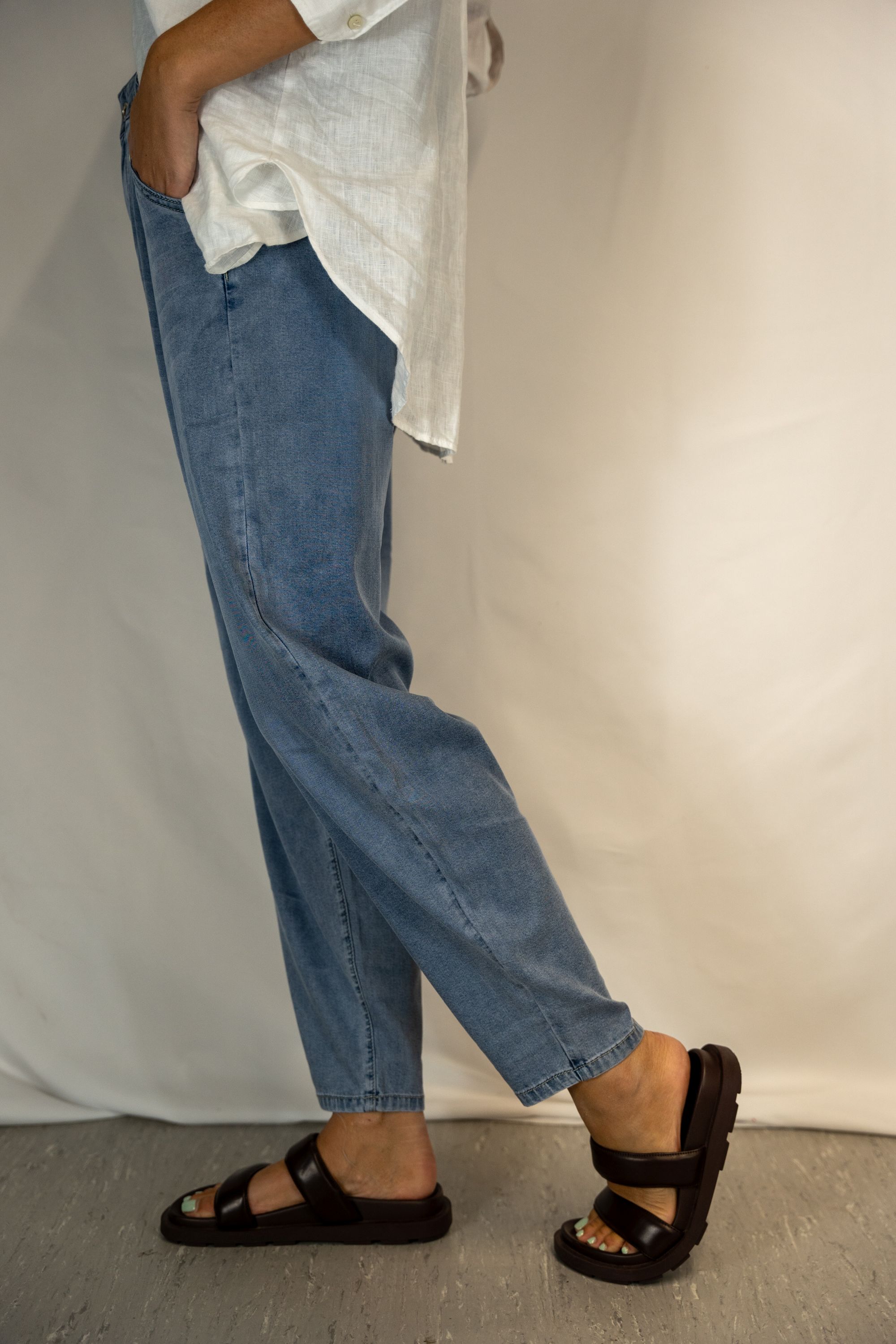 Der modische Blue Monkey Style Ashley sitzt bequem auf der Taille. Der Ballon Fit entsteht durch den O-Shape Beinverlauf und die Bundfalten. Die Cropped Länge verleiht der Jeans eine extra lässiges Finish.