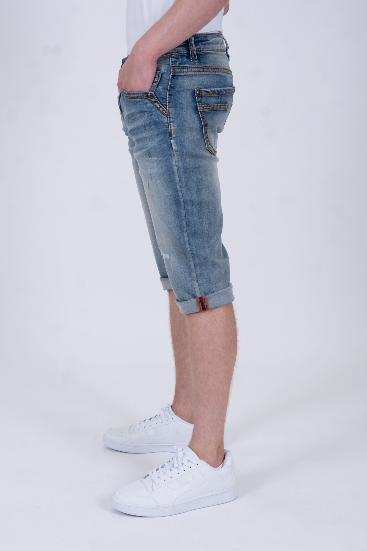 Freddy ist ein echter Blue Monkey Klassiker. Die 3/4 Jeans mit destroyed Details und markanten Nähten, ist ein echter Hingucker. Der Denim Style überzeugt mit detailreichen Nähten an den Front- und Gesäßtaschen. Der Viskoseanteil verleiht dem Stoff ein besonders weiches Finish.