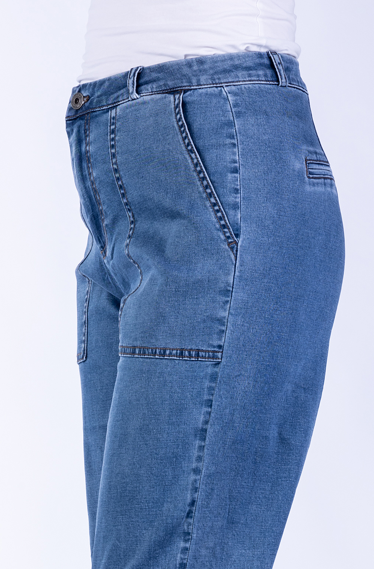Der Blue Monkey Style Nela mit verkürzter Beinlänge, ist der perfekte Begleiter für den Frühling. Mit ihren schrägen, aufgesetzten Eingriffstaschen und lockerer Passform, lässt sich die Jeans perfekt zu Sneakern kombinieren. Die Paspeltaschen hinten, runden den lässig, femininen Look gekonnt ab.