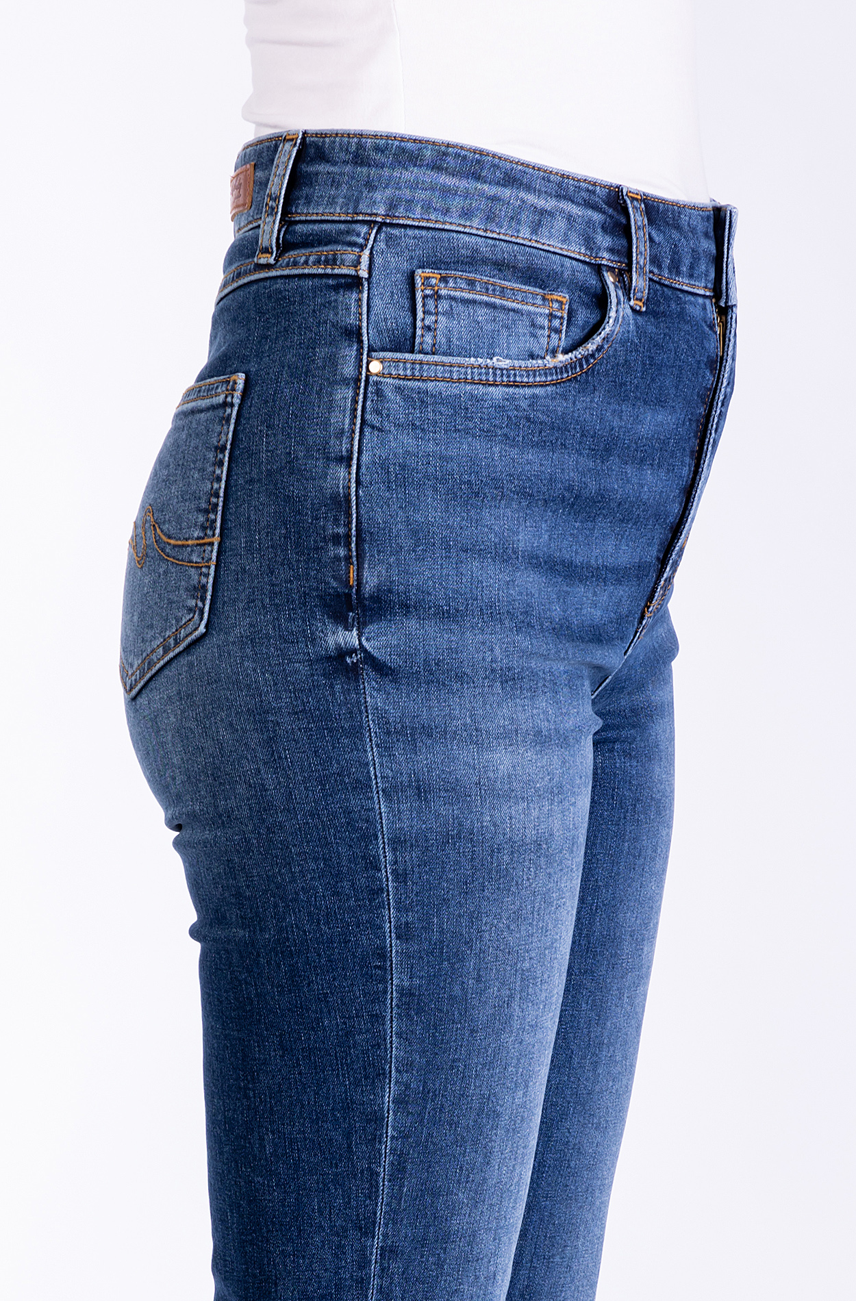 Die Blue Monkey Jeans Tiana ist ein femininer Bootcut Style mit leicht ausgestelltem Bein. Geschwungene Stickereien auf den Gesäßtaschen setzen Akzente. Die Jeans kommt mit Lyocell Anteil, welcher zu einen besonders hohen Tragekomfort beiträgt.